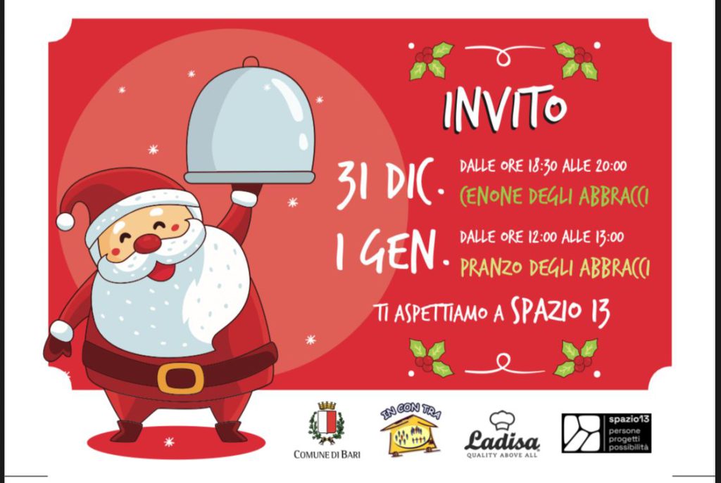 Non solo piccoli comuni, ma anche le grandi città organizzano i tradizionali appuntamenti solidali del Welfare dedicati alle persone senza dimora e a coloro che vivono in condizione di solitudine. A Bari, grazie all’impegno dell’associazione In.Con.Tra e al supporto dell’assessorato al Welfare e della Ladisa ristorazione, quest’anno la Cena e il Pranzo degli Abbracci, in programma rispettivamente mercoledì 31 dicembre e giovedì 1 gennaio 2026, si terranno per 200 persone nello Spazio13, nel quartiere Libertà, con il sindaco Vito Leccese, l’assessora alla Giustizia e al Benessere sociale e ai Diritti civili Elisabetta Vaccarella e altri rappresentanti dell’amministrazione. Agli ospiti sarà garantito il trasporto gratuito su⁠i bus navetta messi a disposizione da Amtab: la partenza per i due punti di raccolta, e con destinazione Spazio13, sarà alle 17.30, mentre alle 21 è previsto il servizio di ritorno alle strutture di accoglienza notturne, il Don Vito Diana della Caritas (nei pressi del cimitero) e il centro comunale Andromeda (corso de Gasperi).
