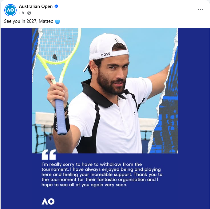 Tennis, niente Australian Open per l’azzurro Berrettini. Il forfait prima del debutto con De Minaur